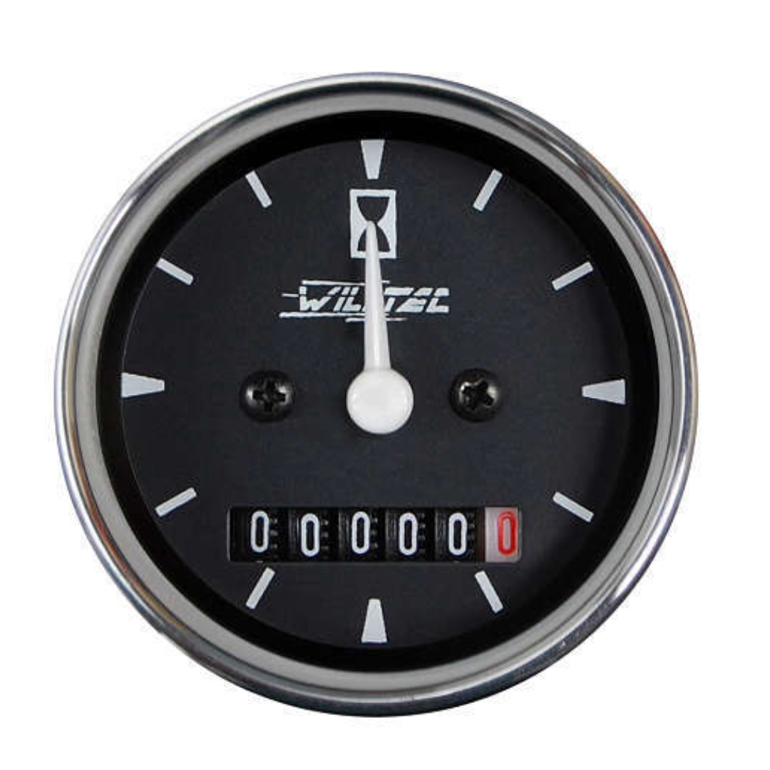 Horimetro Universal com ponteiro 12 / 24V Sem amortecedor 52mm Aro Cromado